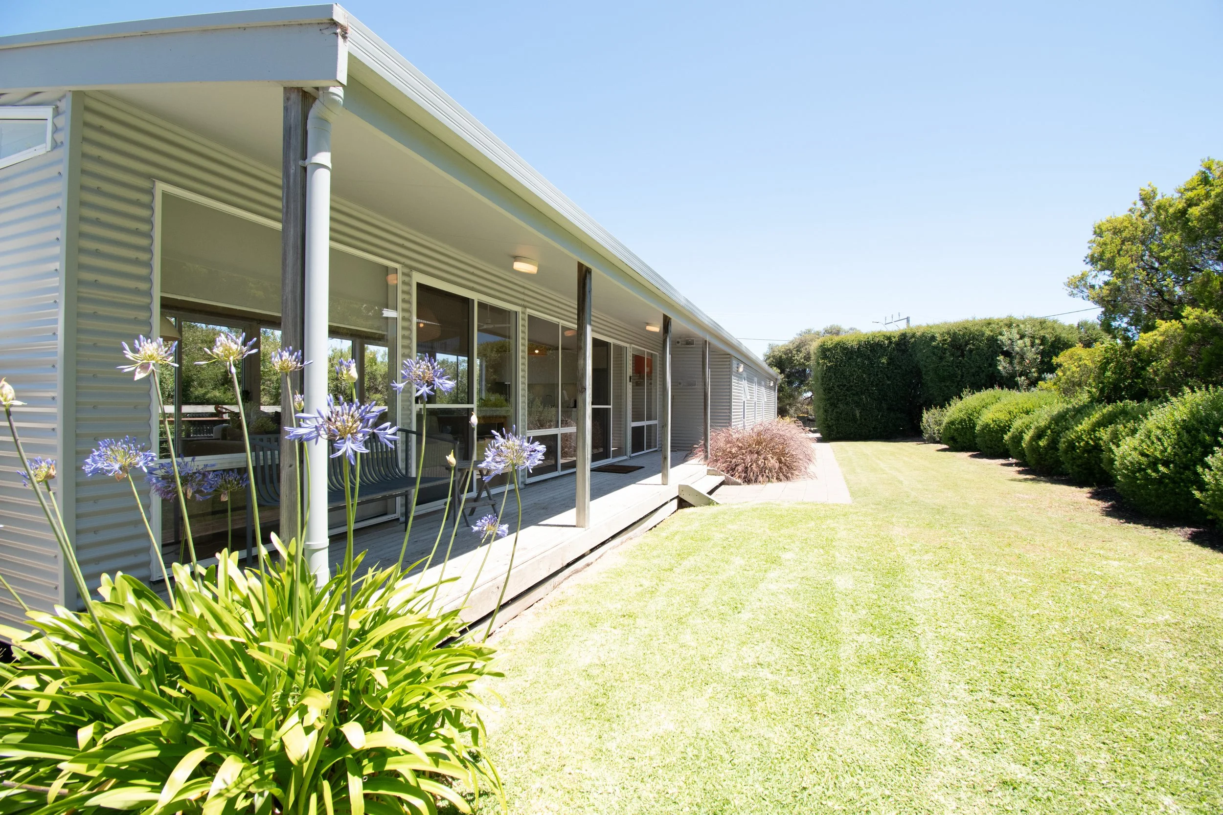 Lawned area with coastal garden